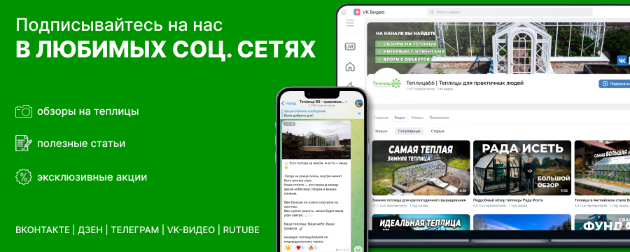 Садовые конструкции для выращивания растений от компании «Теплица 66» рассчитаны на длительный срок эксплуатации. Каркасы теплиц произведены из материалов, стойких к образованию коррозии. А дополнительная защита каркаса порошковой краской обеспечивает ему защиту от царапин и воздействия внешней среды. Поликарбонатные теплицы устойчивы к воздействию атмосферных осадков и морозов, их можно не разбирать на зиму. Вы обязательно найдете в нашем интернет-магазине теплицу от производителя, которая подойдет вам по своим характеристикам (размеру, форме, назначению, материалам каркаса и покрытия). Ознакомьтесь с ассортиментом продукции на сайте и закажите теплицу для своего сада, а также дополнительное оборудование для нее: систему отопления, автоматического проветривания и полива.